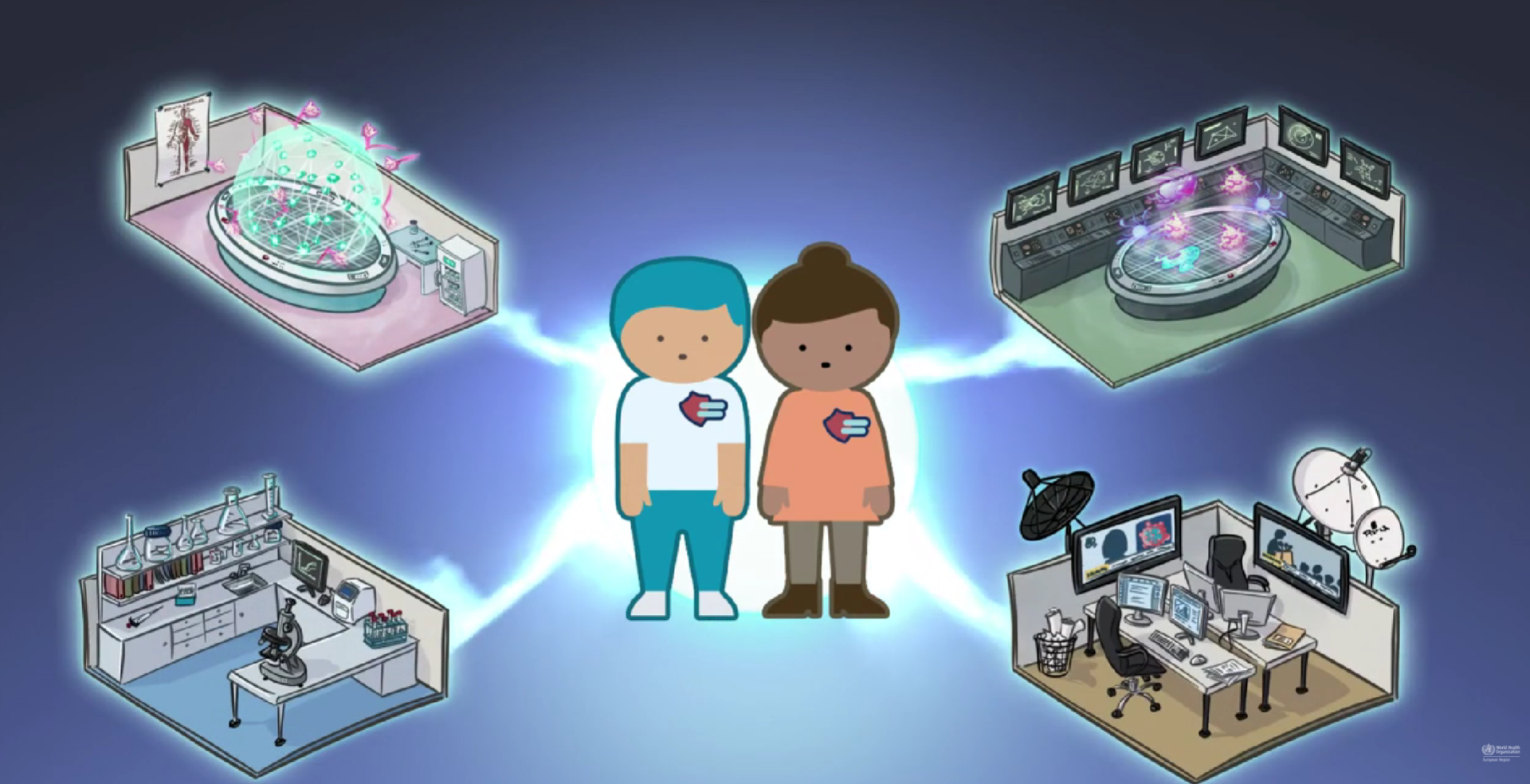 Narațiunea generală a platformei este aceea că elevii sunt înscriși la Academia Imunitară, un centru fictiv de antrenament care îi va pregăti să lupte împotriva bolilor infecțioase și să evite epidemiile. Pentru a finaliza antrenamentul, elevii trebuie să parcurgă toate modulele de formare.